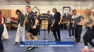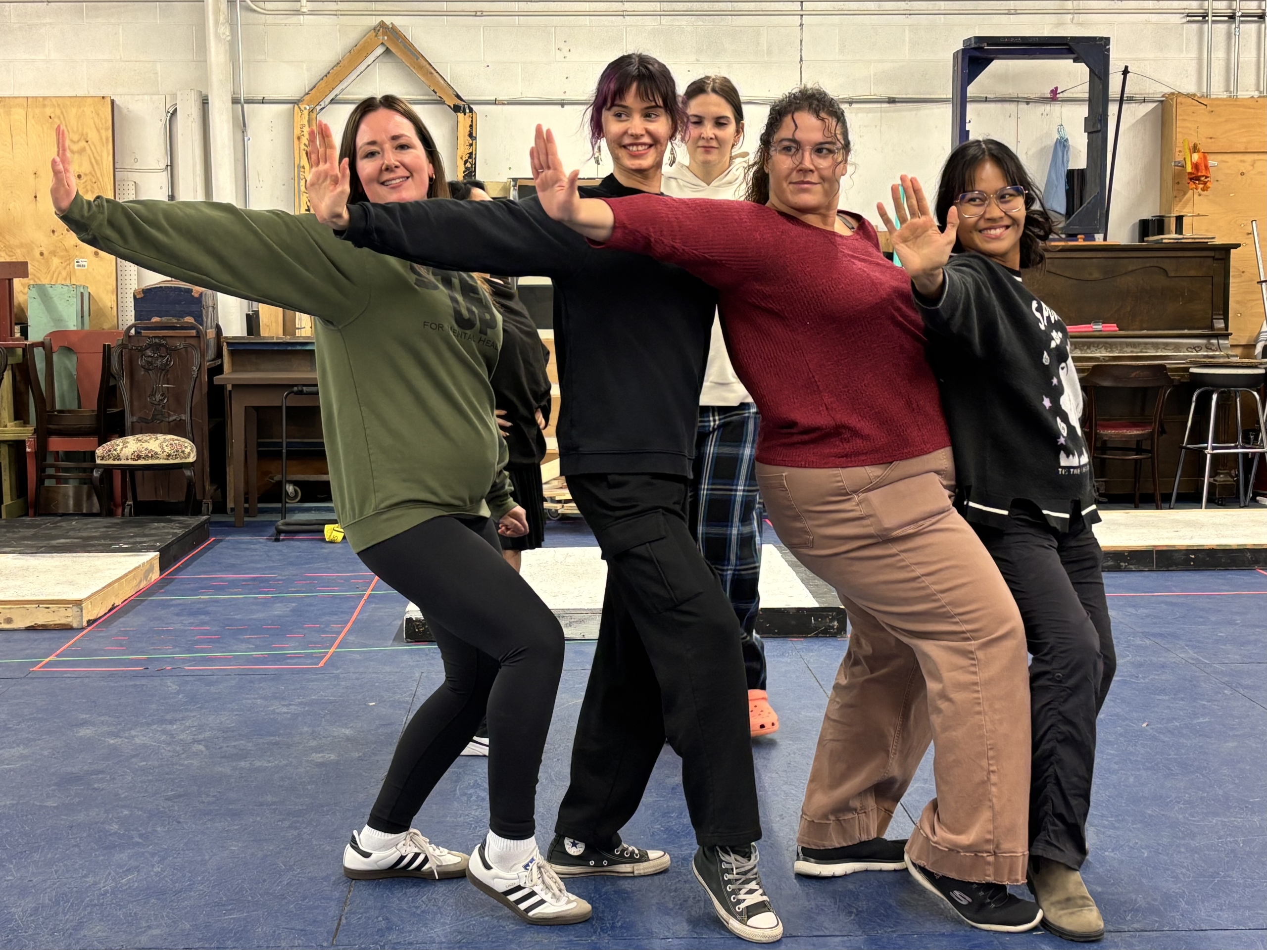 Cast of The Wedding Singer at rehearsal (l-r)Jordan Kalesnikoff, Mars Himbeault, Riel Fidler-Jukes, Jessica Goodman, Adrianne Tanjusay. (Saskatoon Summer Players)