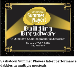 It’s like a choose your own adventure for musical theatre buffs. The Saskatoon Summer Players handed the reins over to its artists for Building Broadway – A Director’s & Choreographer’s Showcase. Local choreographers and directors submitted their ideas for what inspires them and then built a cast for this revue-style show. Mykaela Mennie jumped at the chance.